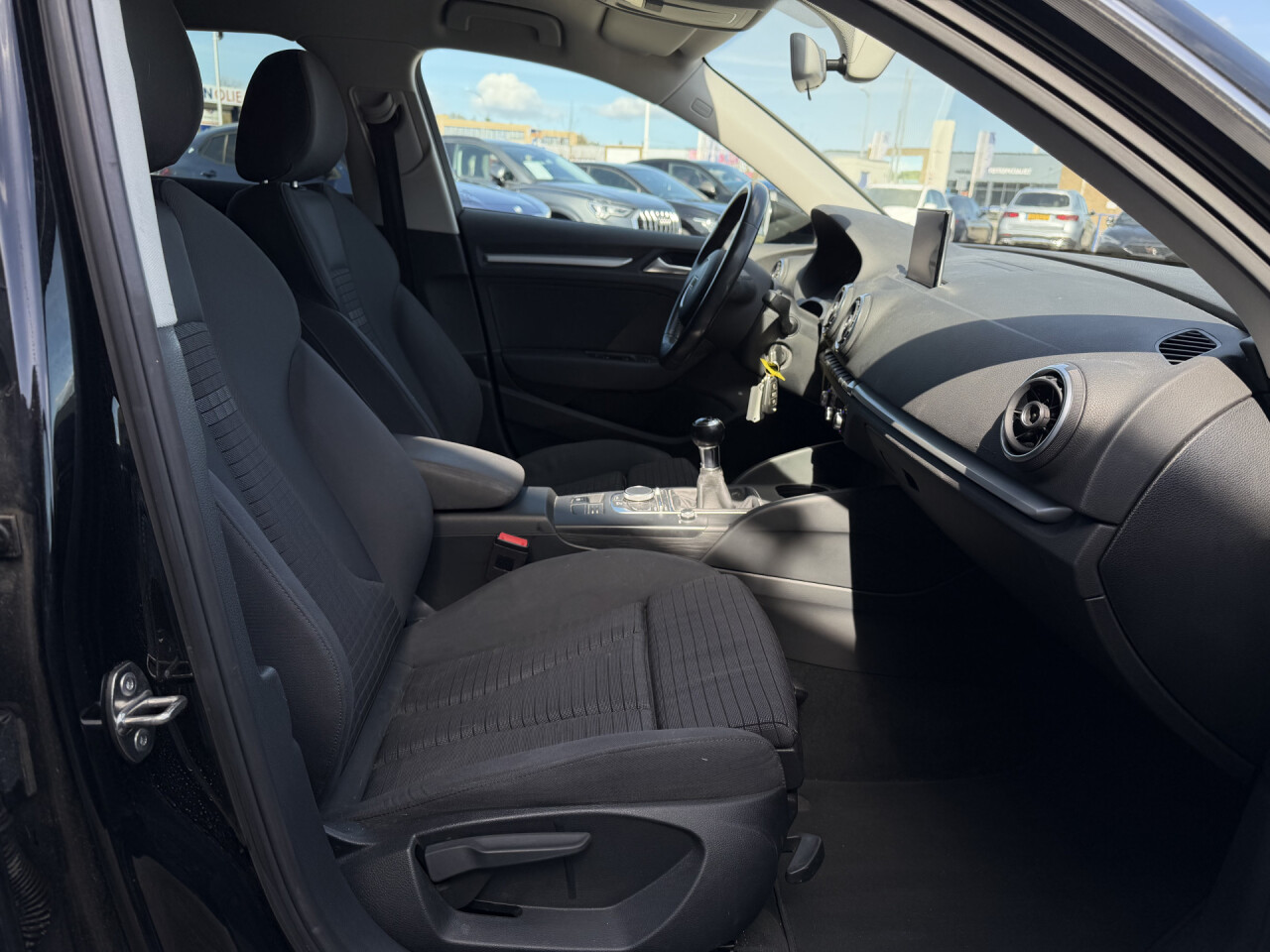 Nieuw binnen bij AutoHuiz BV Winschoten, een goed onderhouden en rijk uitgeruste Audi A3 Sportback 1.4 TFSI Ambition Sport Edition in de kleur Mythezwart metallic.
