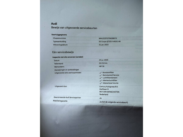 Recent (07-2025) heeft deze Audi S5 bij Audi zijn benodigde onderhoudsbeurt gehad.