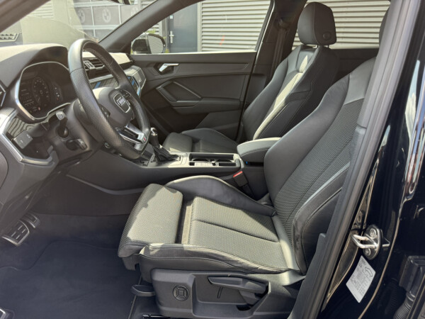 Nieuw binnen bij AutoHuiz BV Winschoten, een zeer rijk uitgeruste en dealeronderhouden Audi Q3 Sportback 45 TFSI e Edition S-Line in de kleur Mythosschwarz Metallic.