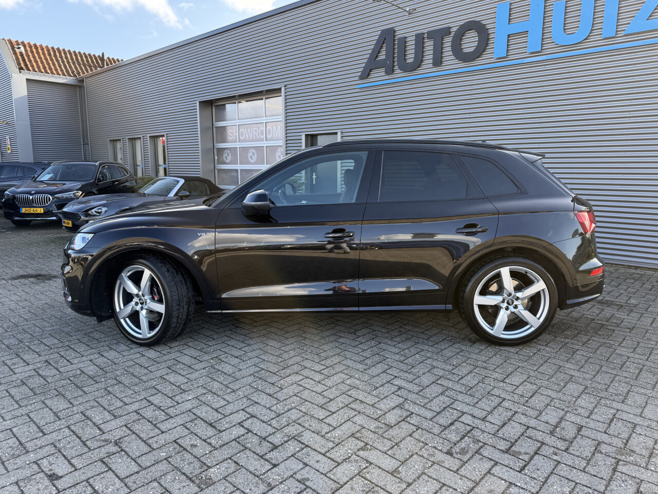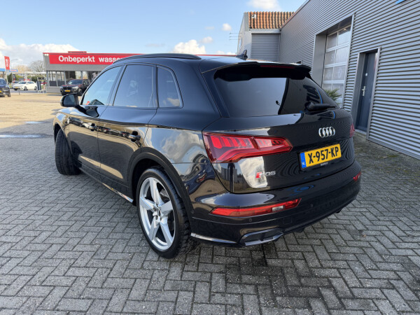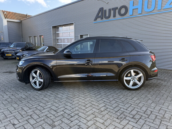 Nieuw binnen bij AutoHuiz BV Winschoten, een dealeronderhouden en rijk uitgeruste Audi Q5 3.0 TFSI SQ5 quattro Pro Line Plus in de unieke kleur Panther Black Crystal Pearl!