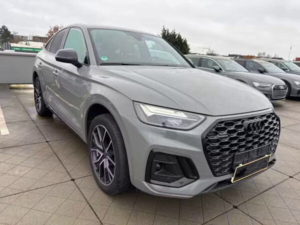 Nieuw binnen bij AutoHuiz BV Winschoten, een rijk uitgeruste en dealeronderhouden Audi Q5 Sportback 50 TFSI e S-Line in de kleur Quantum Grey metallic.