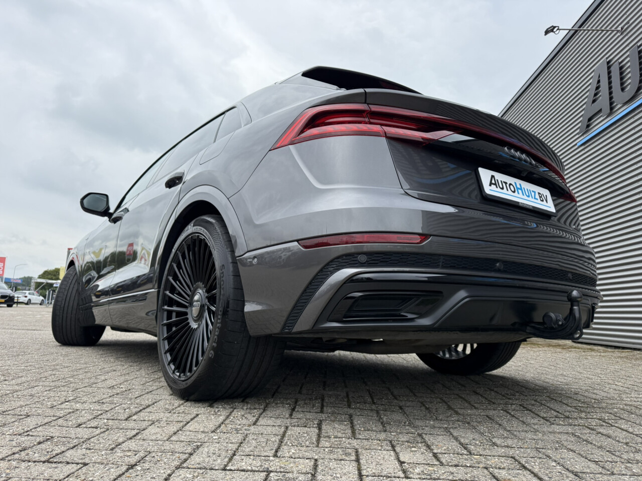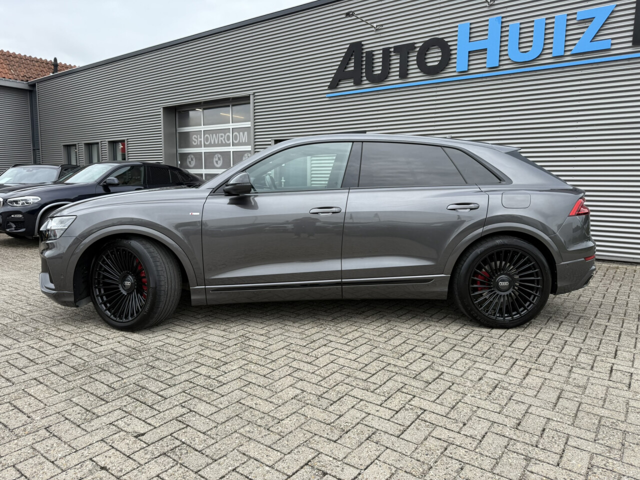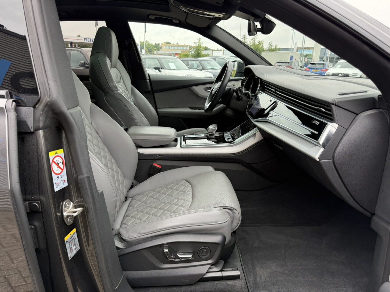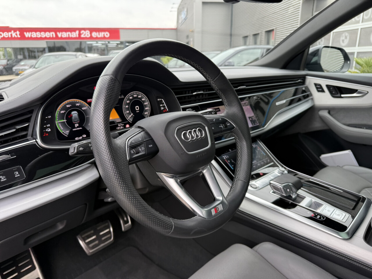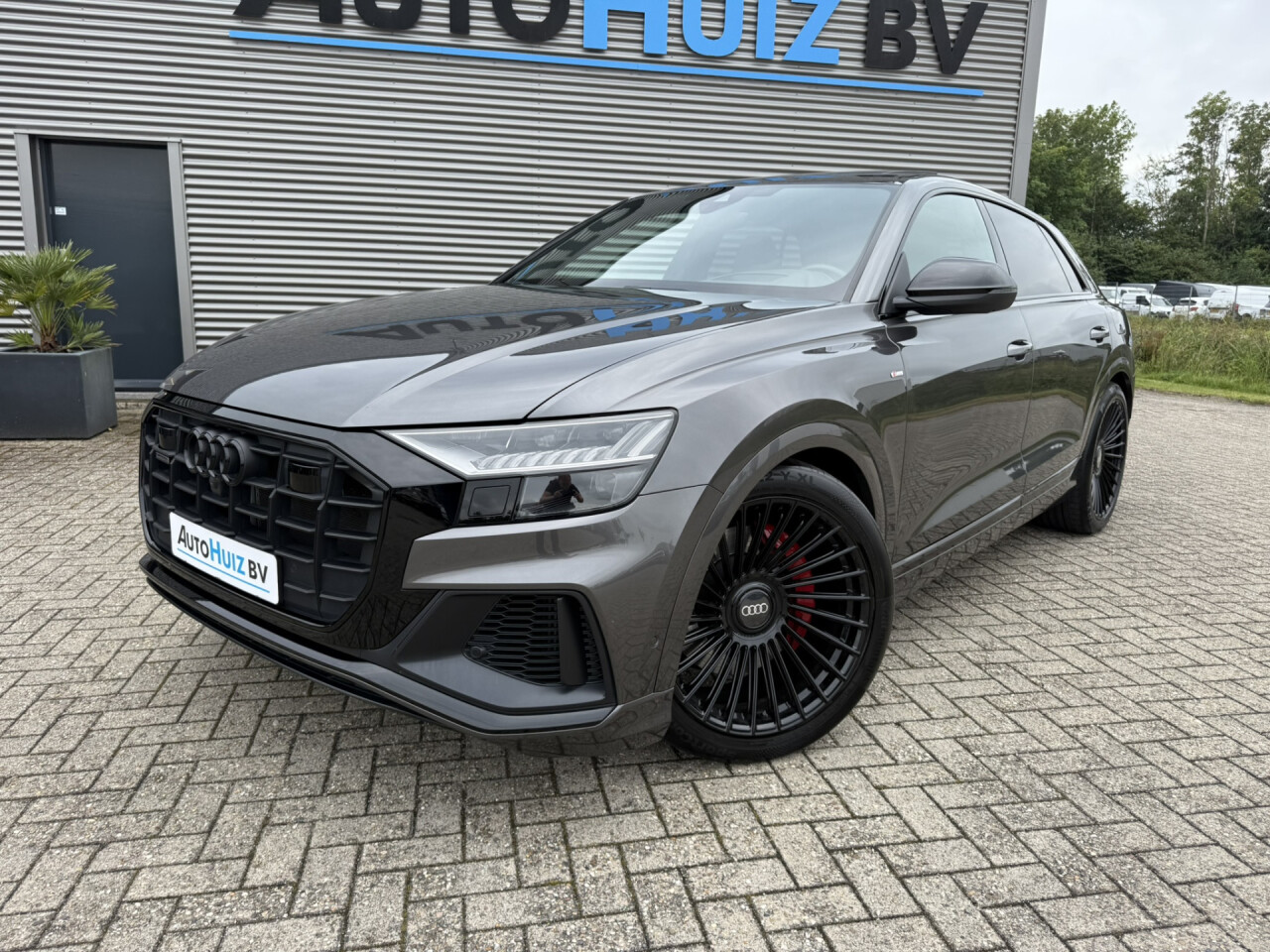 Nieuw binnen bij AutoHuiz BV Winschoten, een zeer rijk uitgeruste en dealeronderhouden Audi Q8 60 TFSI e Quattro Pro Line S Competition in de Audi Exclusief lak Rotor Grau Metallic afkomstig van de eerste eigenaar.