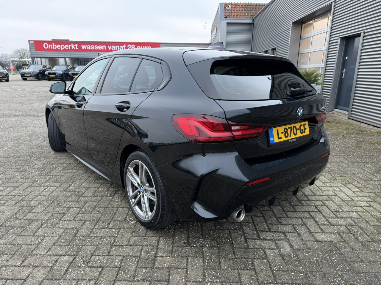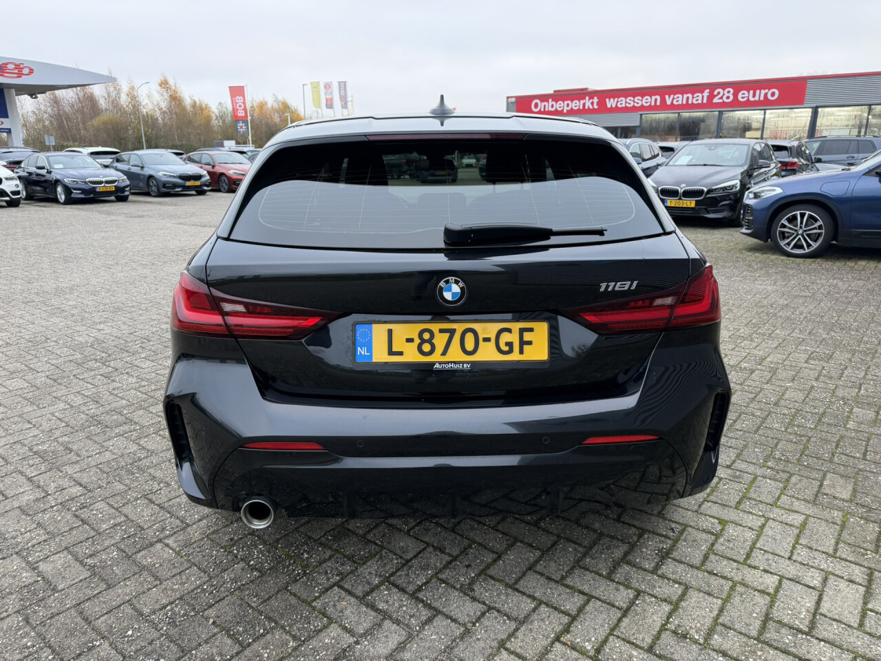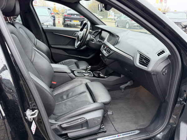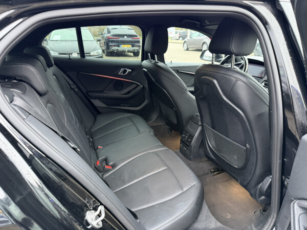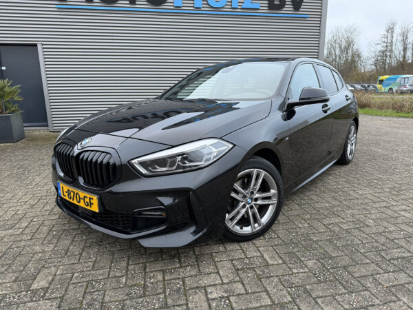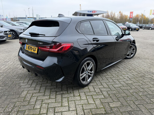 Nieuw binnen bij AutoHuiz BV Winschoten, een zeer goed uitgeruste en dealeronderhouden BMW 118i Automaat M-Sport in de kleur Black Sapphire metallic met een zwart lederen interieur.