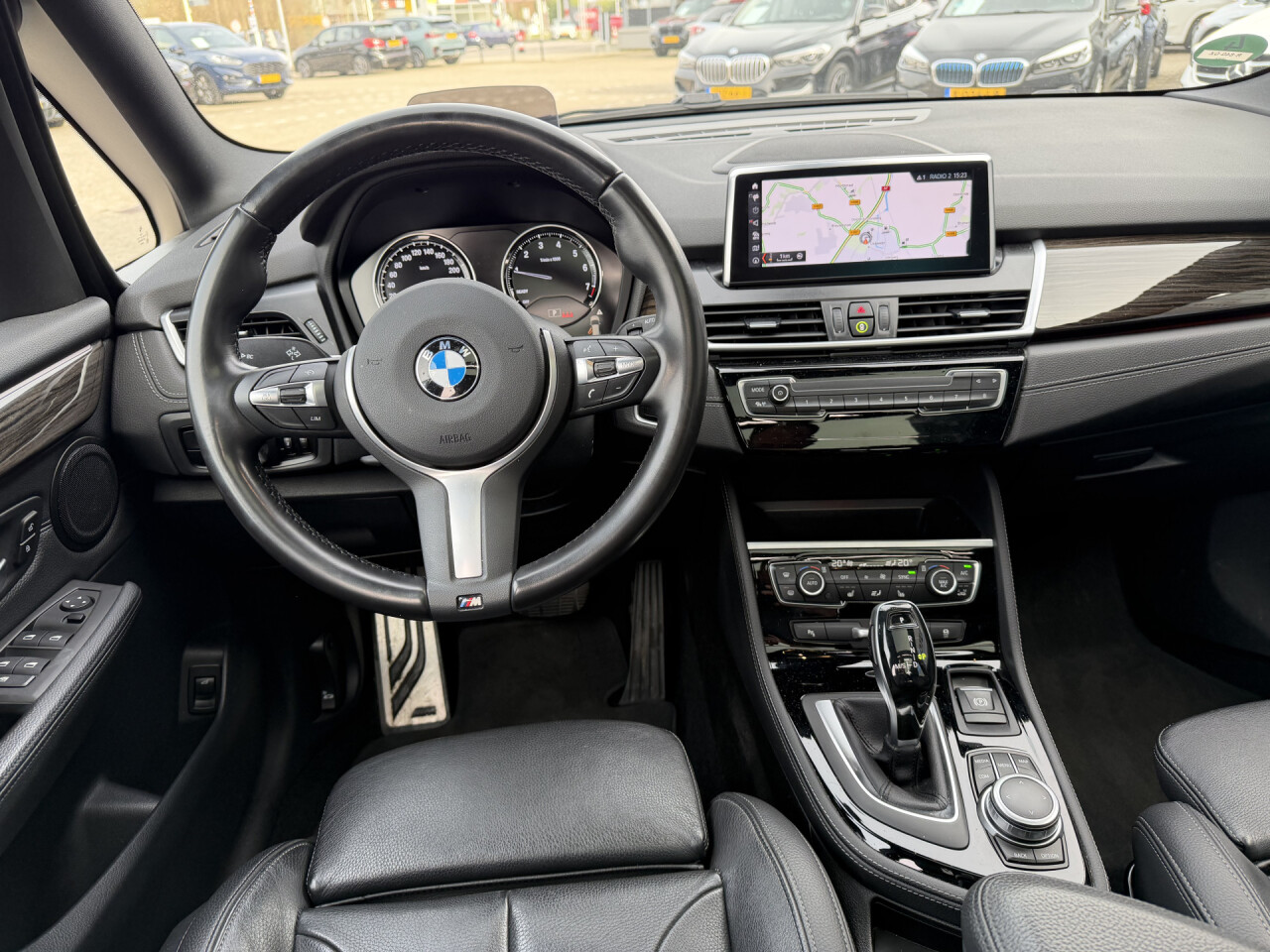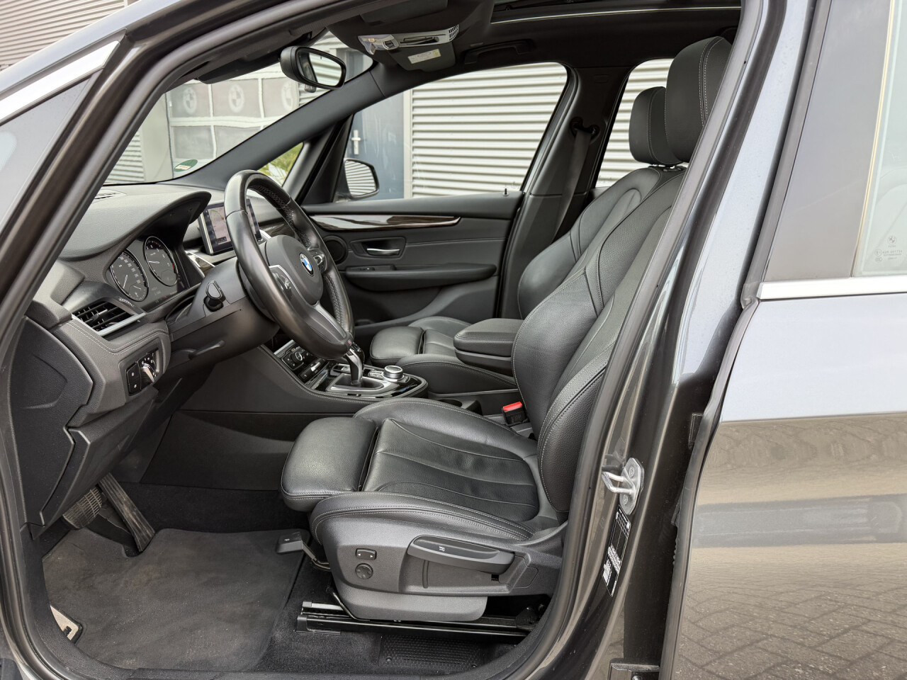 Nieuw binnen bij AutoHuiz BV Winschoten, een zeer rijk uitgeruste en dealeronderhouden BMW 2-serie Gran Tourer 218i High Executive M Sport in de kleur Mineral Grau Metallic met een zwart lederen interieur.