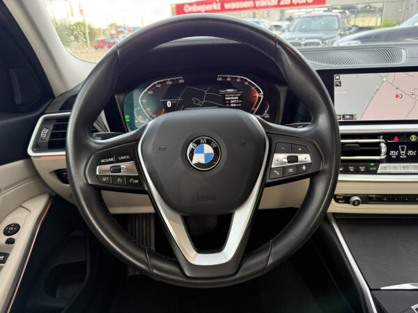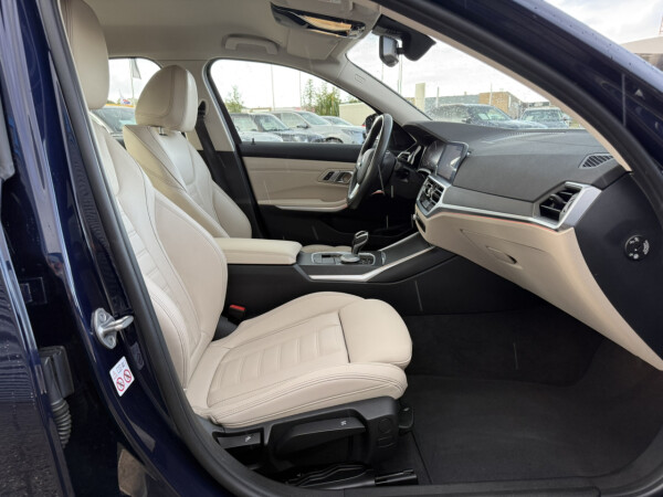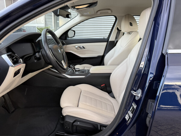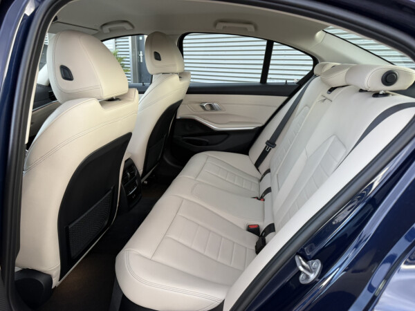 Nieuw binnen bij AutoHuiz BV Winschoten, een hele chique en dealeronderhouden BMW 3-serie 318i 156 PK Luxury Line in BMW Individual Tansanitblau Metallic met een Oyster lederen interieur.