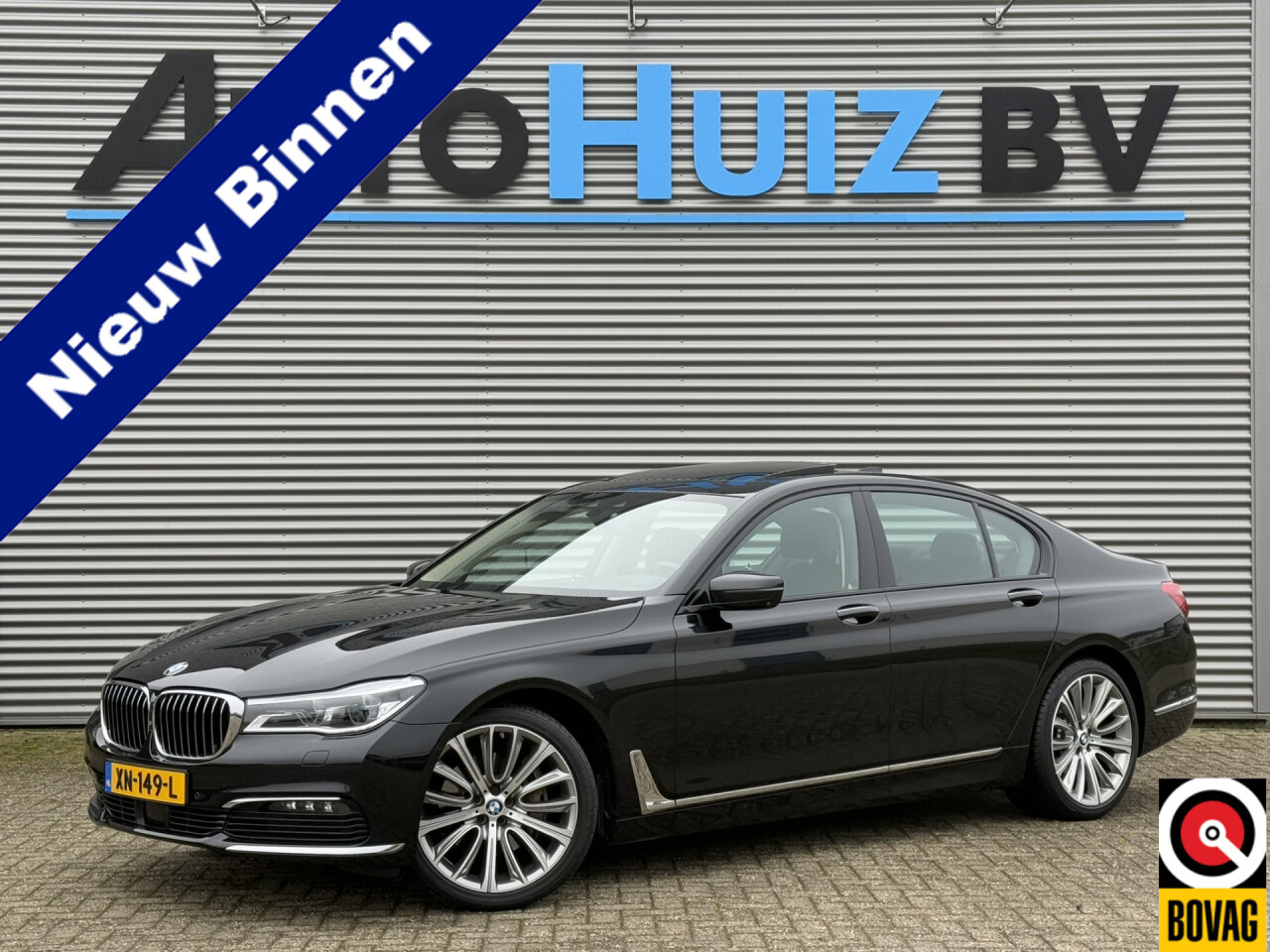 Nieuw binnen bij AutoHuiz BV Winschoten, een dealeronderhouden en zeer rijk uitgeruste BMW 740i High Executive in de kleur Black Sapphire metallic.