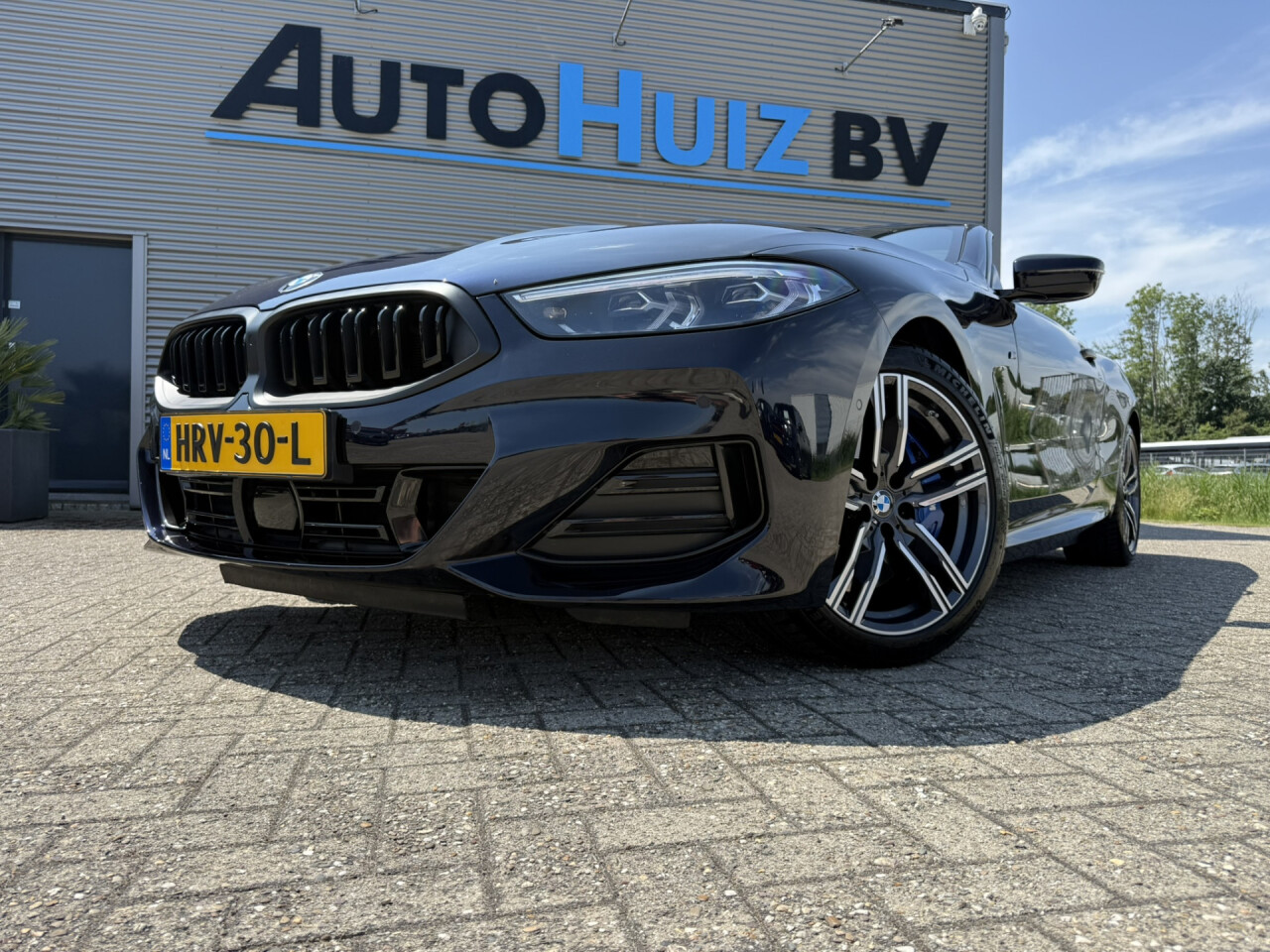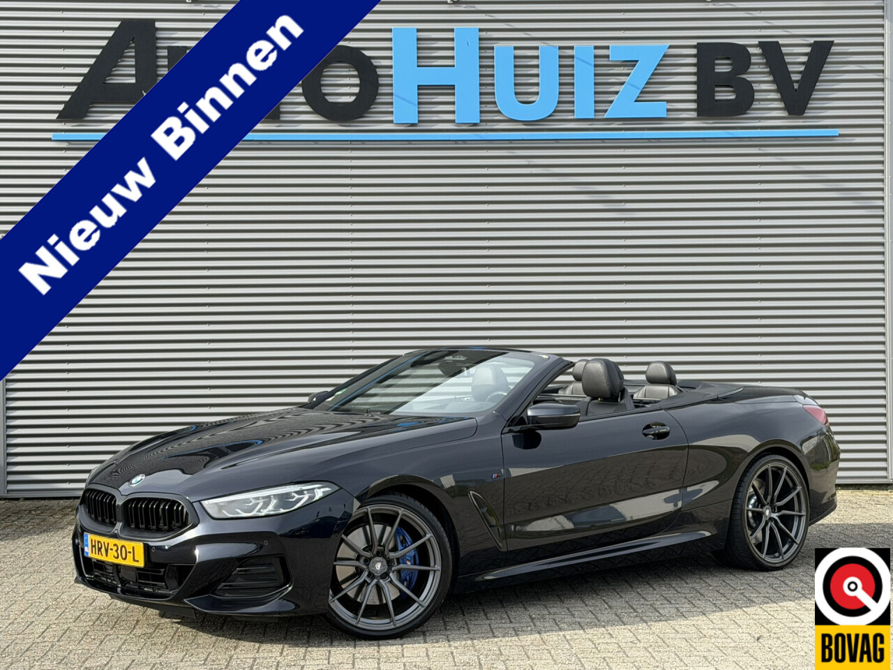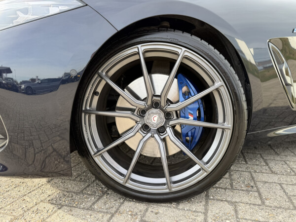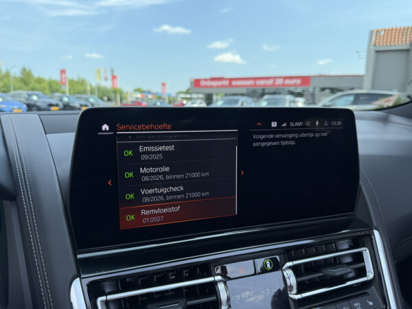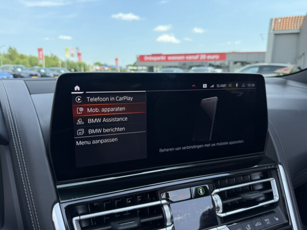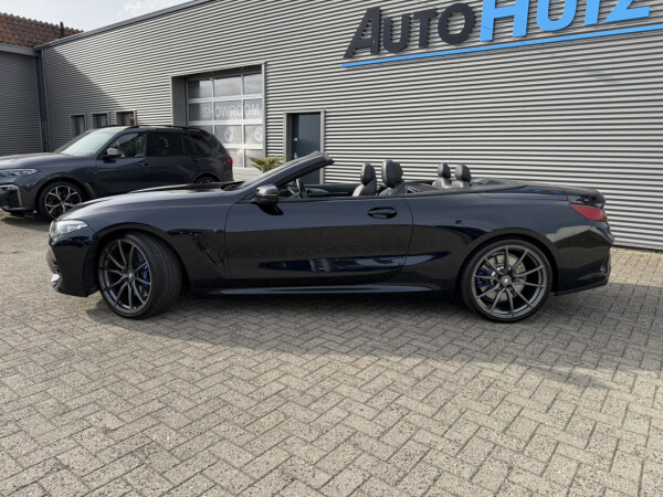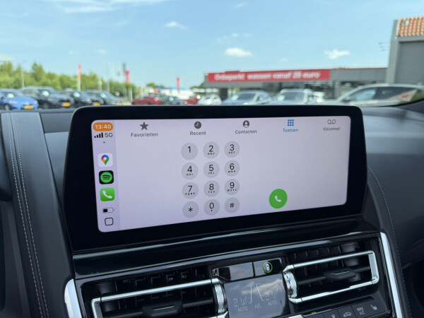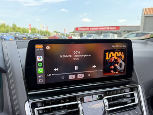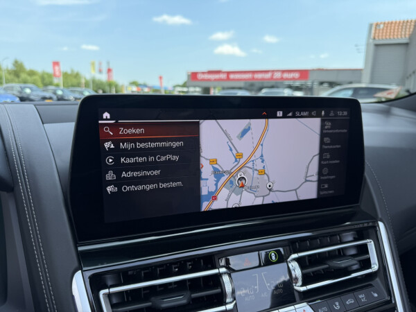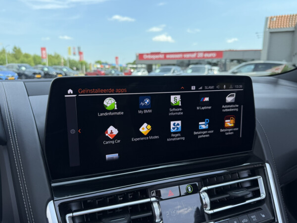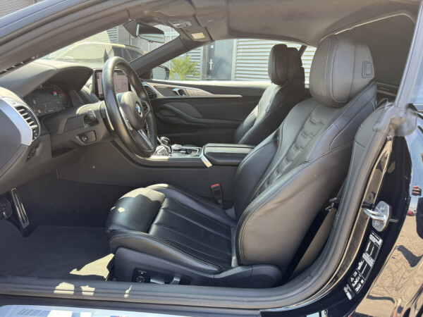 Nieuw binnen bij AutoHuiz BV Winschoten, een top onderhouden BMW 8-serie 840i xDrive High Executive M Sport in de kleur Carbon Schwarz metallic met een zwart Merino lederen interieur.