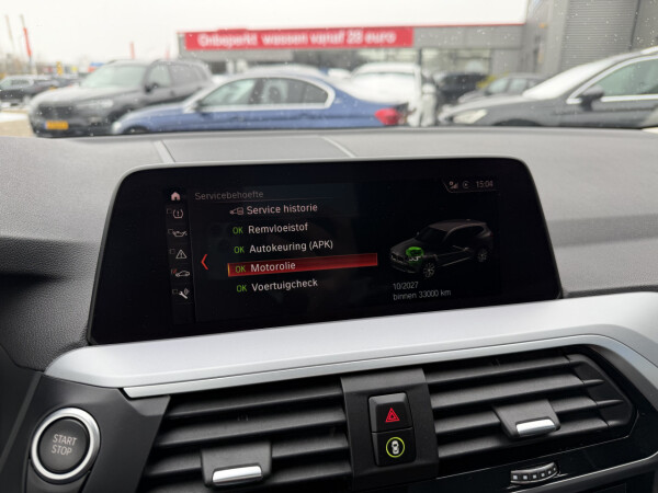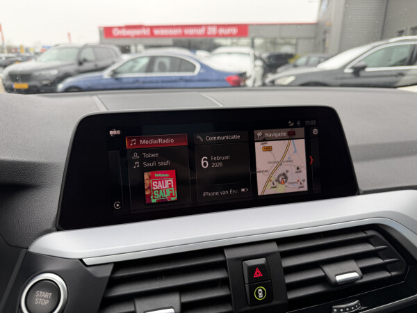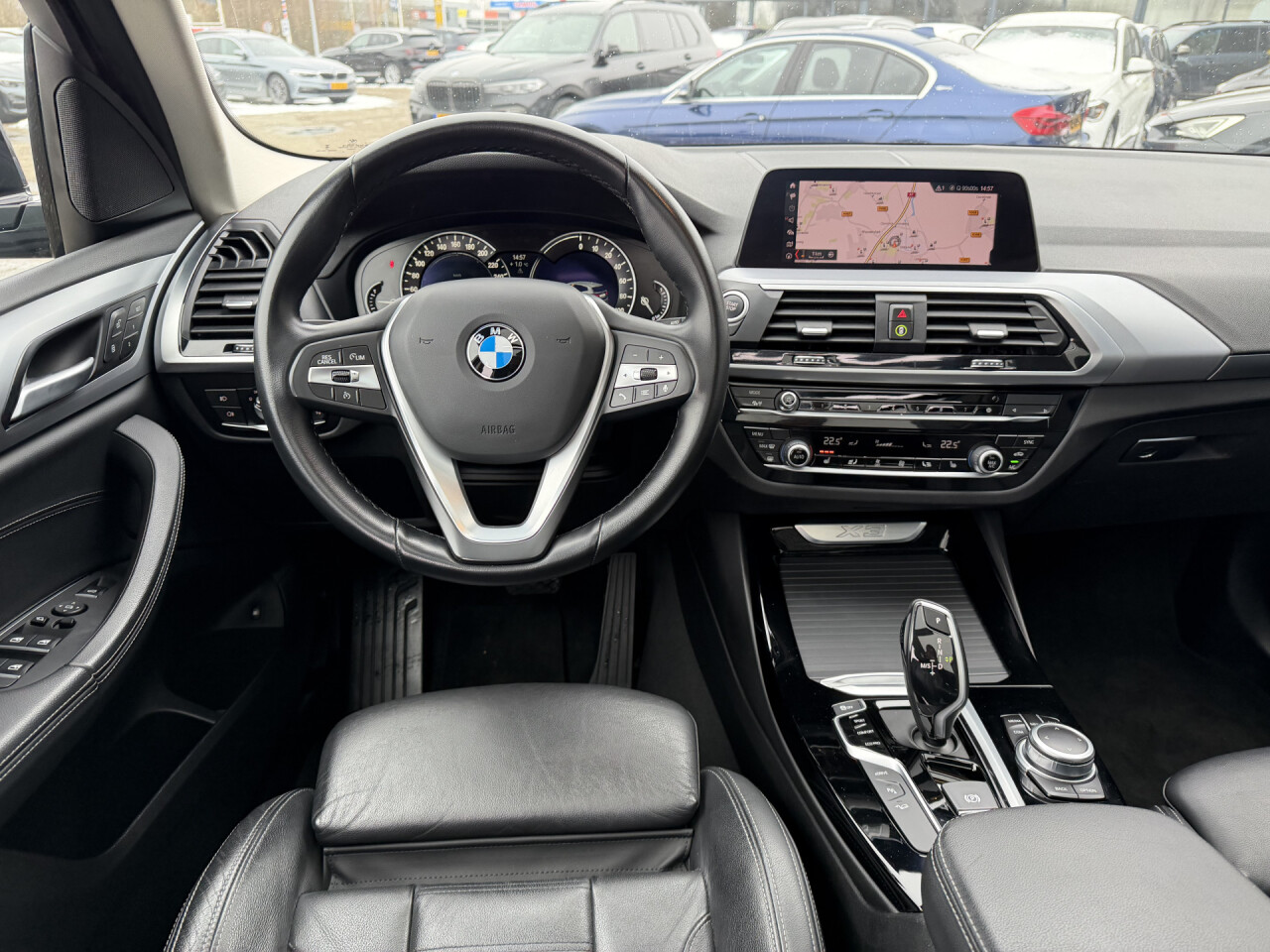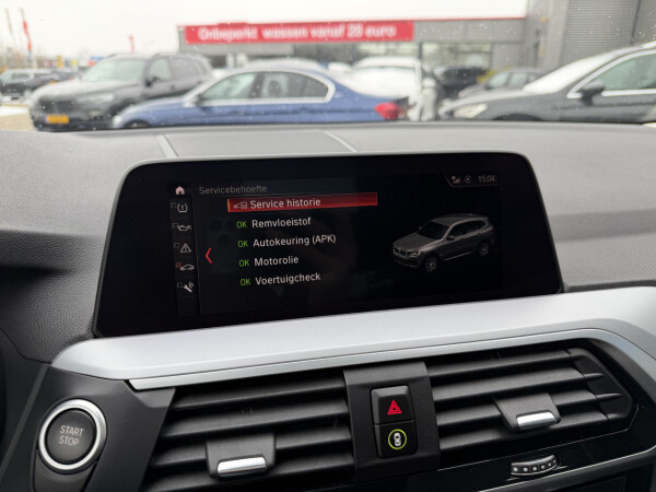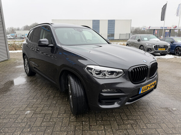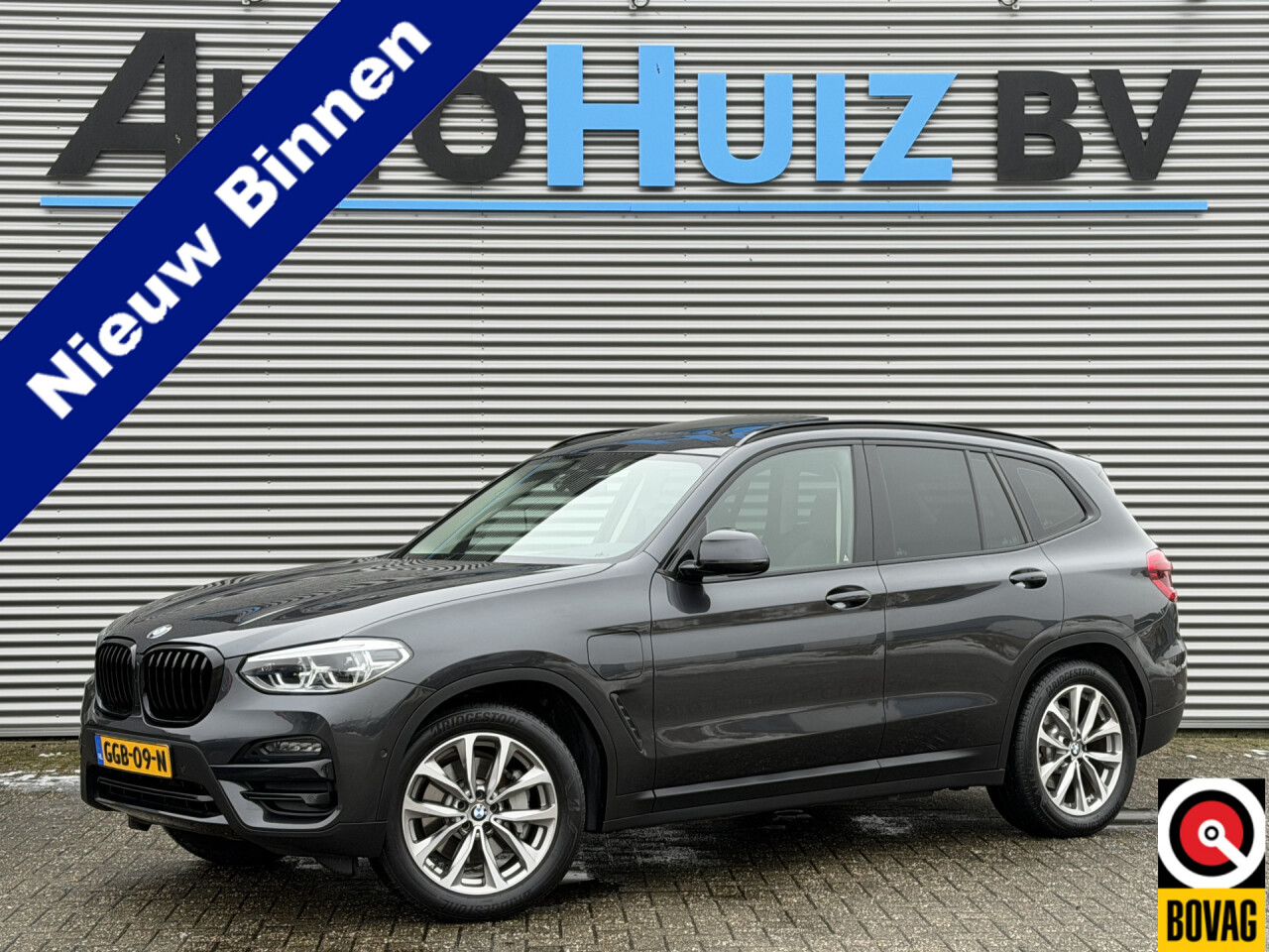 Nieuw bij AutoHuiz BV Winschoten, een zeer rijk uitgeruste en top onderhouden BMW X3 xDrive30e High Executive in de kleur Sophisto Grau Metallic met een zwart lederen interieur.