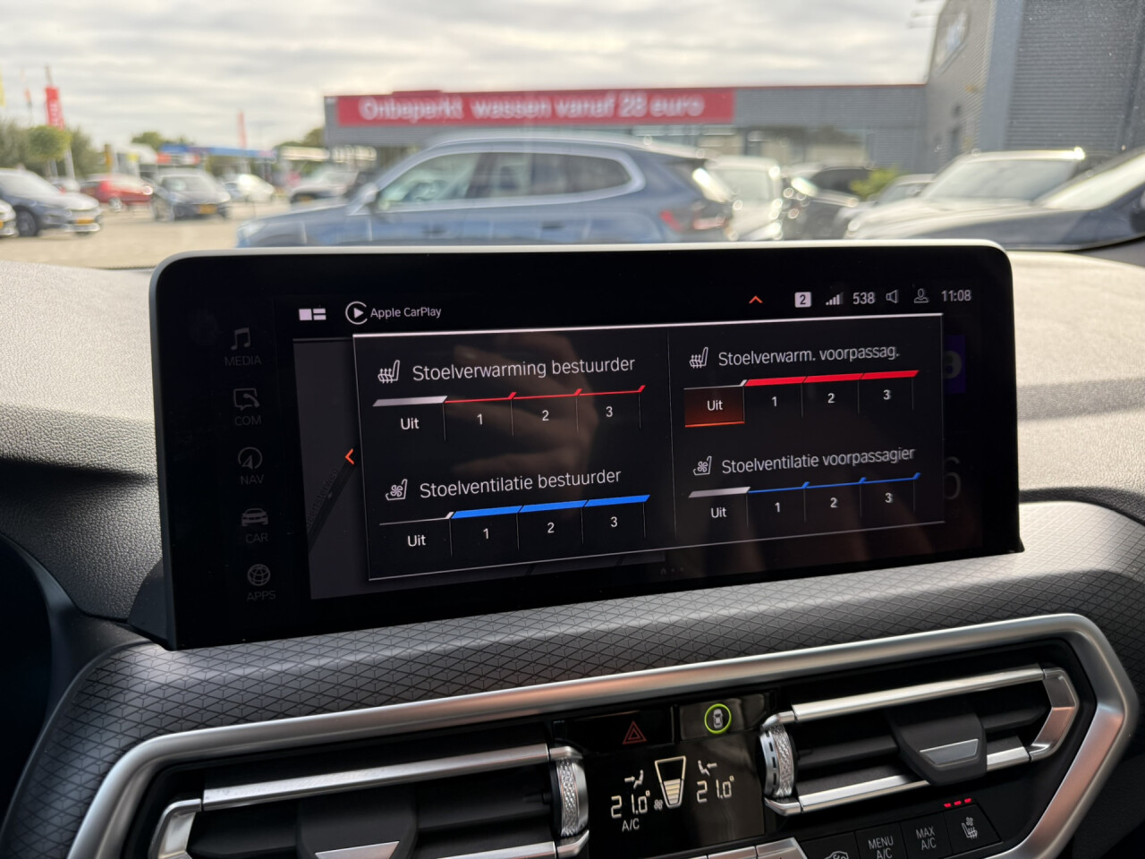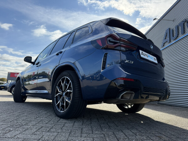 Nieuw binnen bij AutoHuiz BV Winschoten, een stoere, rijk uitgeruste en volledig dealeronderhouden BMW X3 xDrive30e High Executive M Sport in de kleur Pytonic Blauw metallic met een Mokka bruin lederen interieur.
