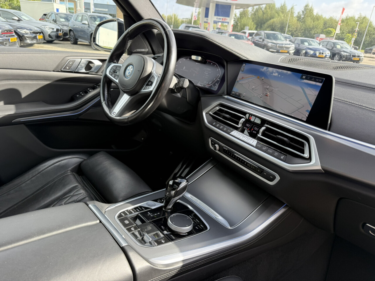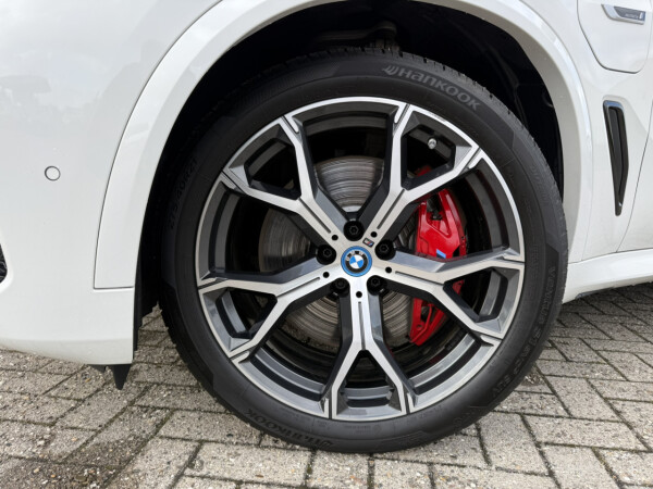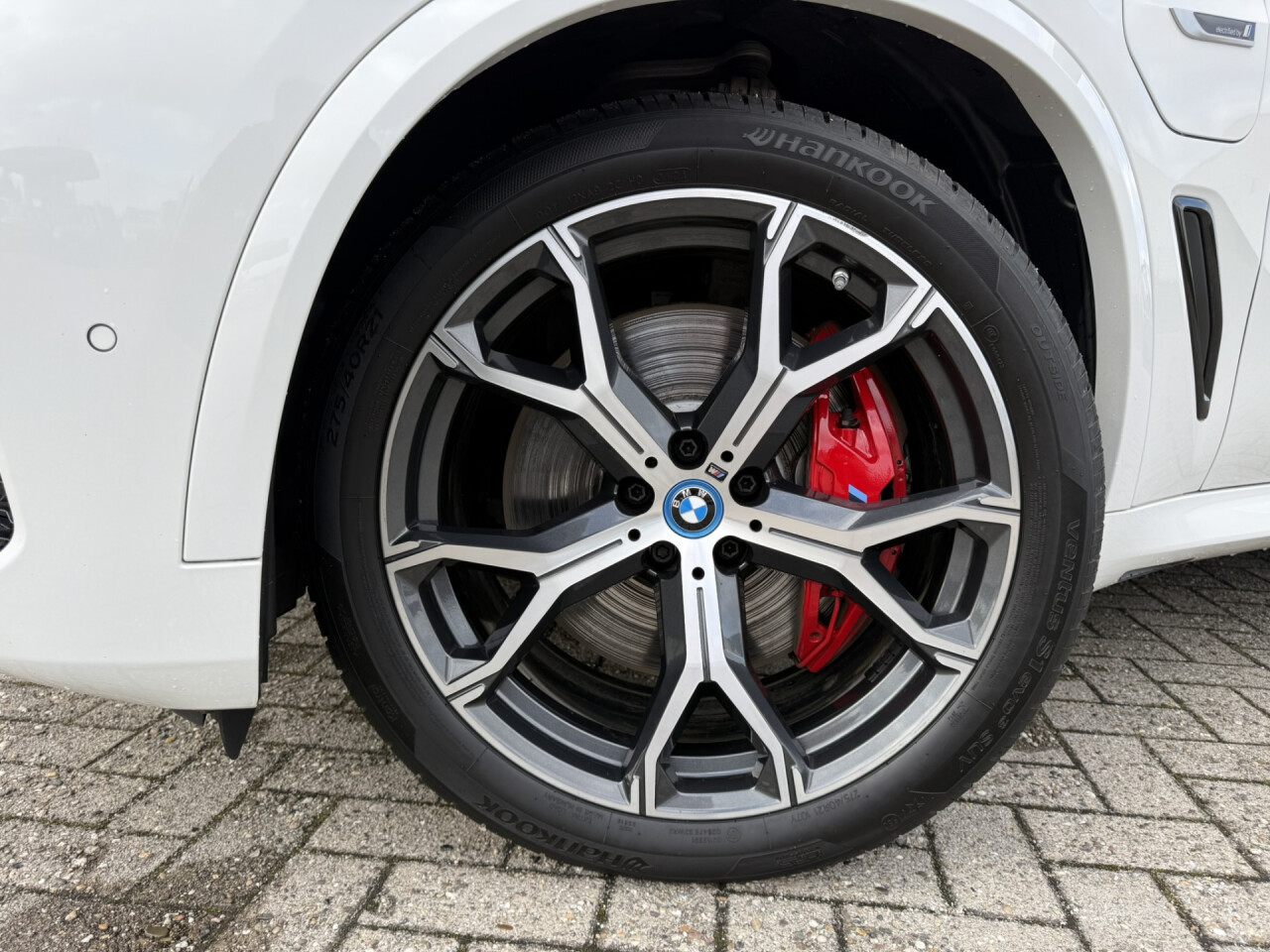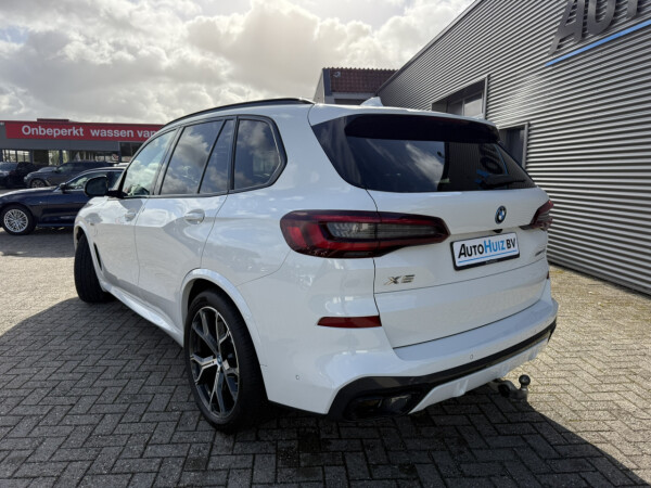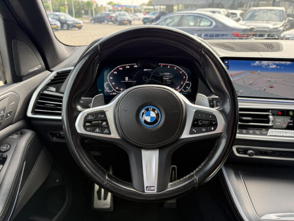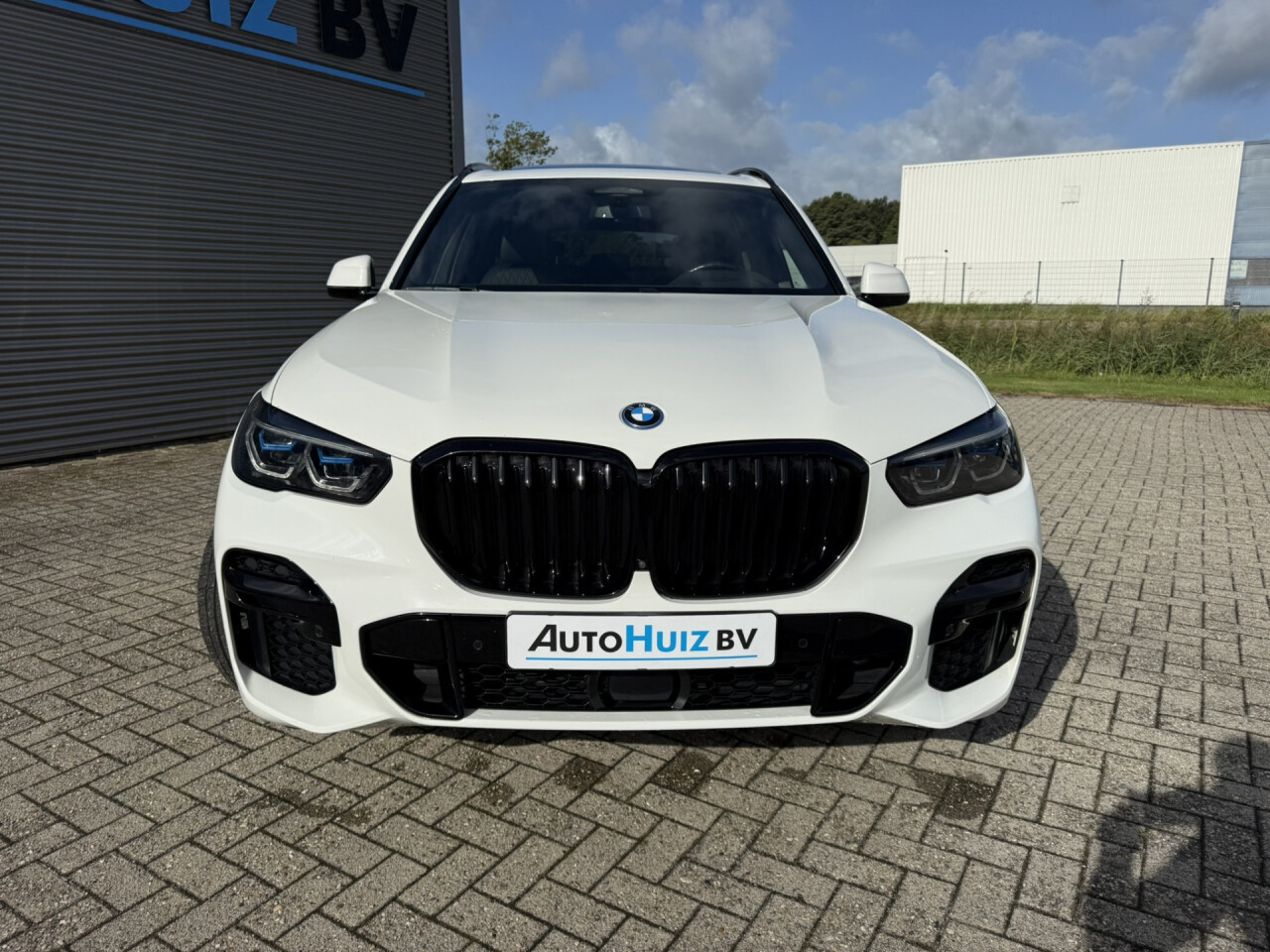 Nieuw binnen bij AutoHuiz BV Winschoten, een zeer rijk uitgeruste en volledig dealeronderhouden BMW X5 xDrive45e High Executive M Sport in de kleur Alpin Weiss met een zwart Merino lederen interieur.