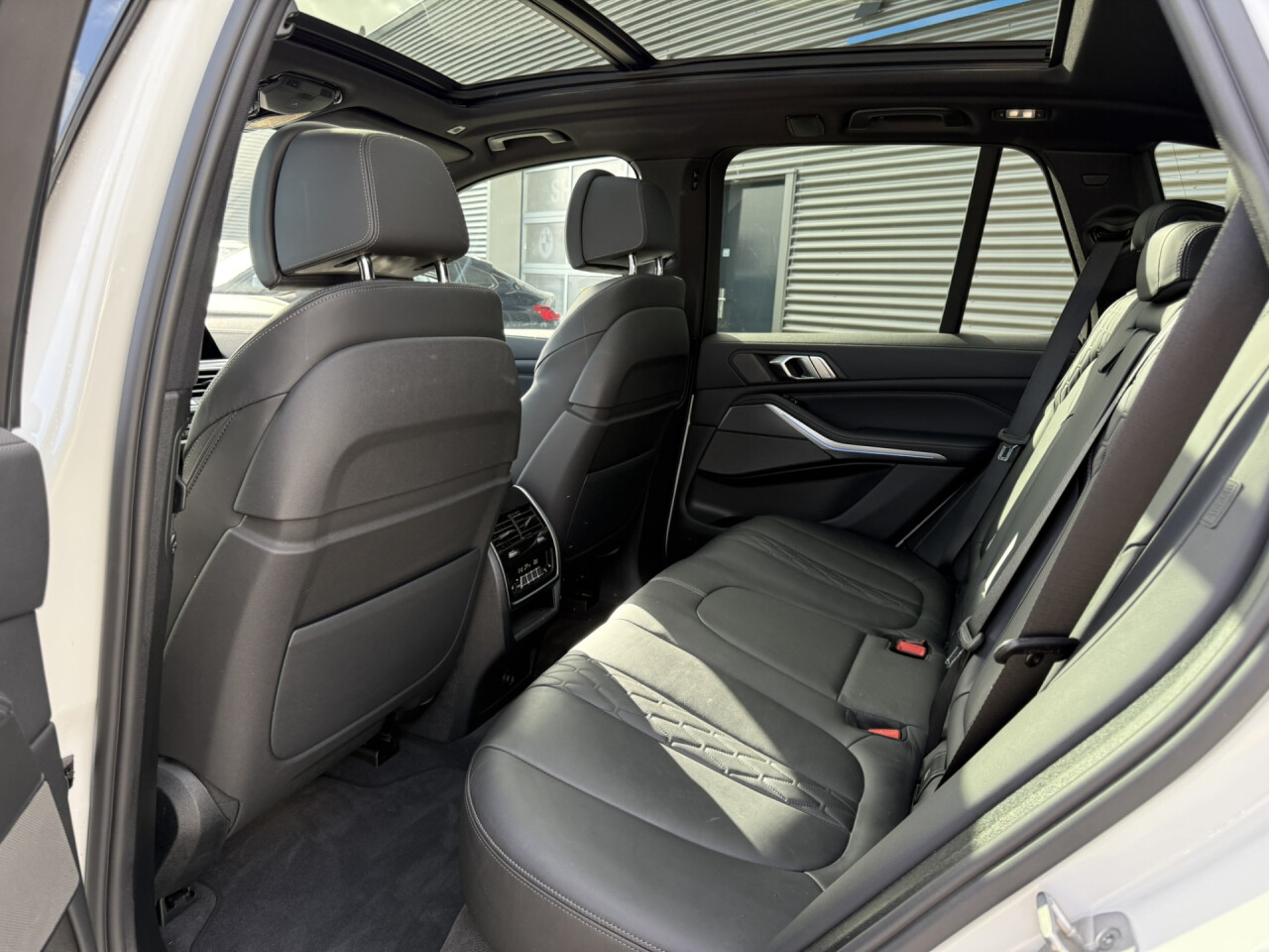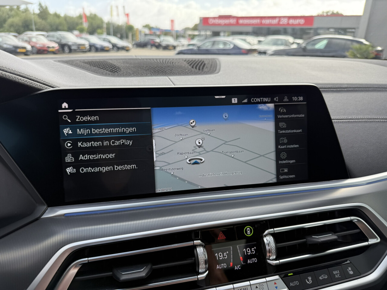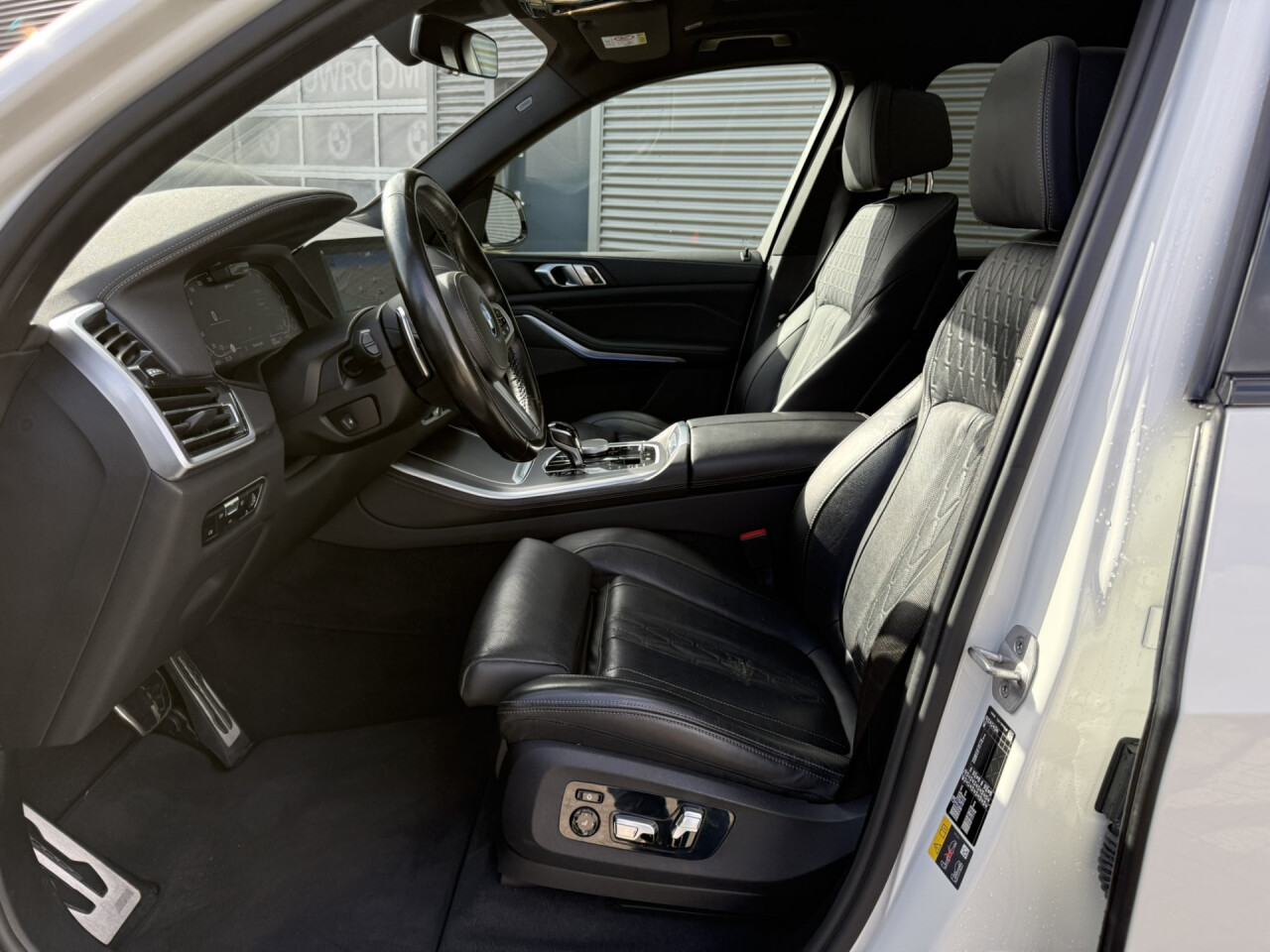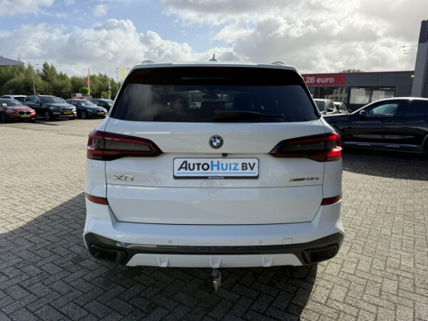 Nieuw binnen bij AutoHuiz BV Winschoten, een zeer rijk uitgeruste en volledig dealeronderhouden BMW X5 xDrive45e High Executive M Sport in de kleur Alpin Weiss met een zwart Merino lederen interieur.