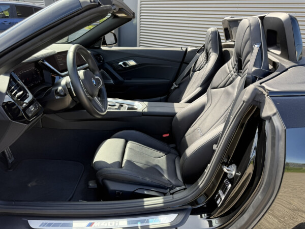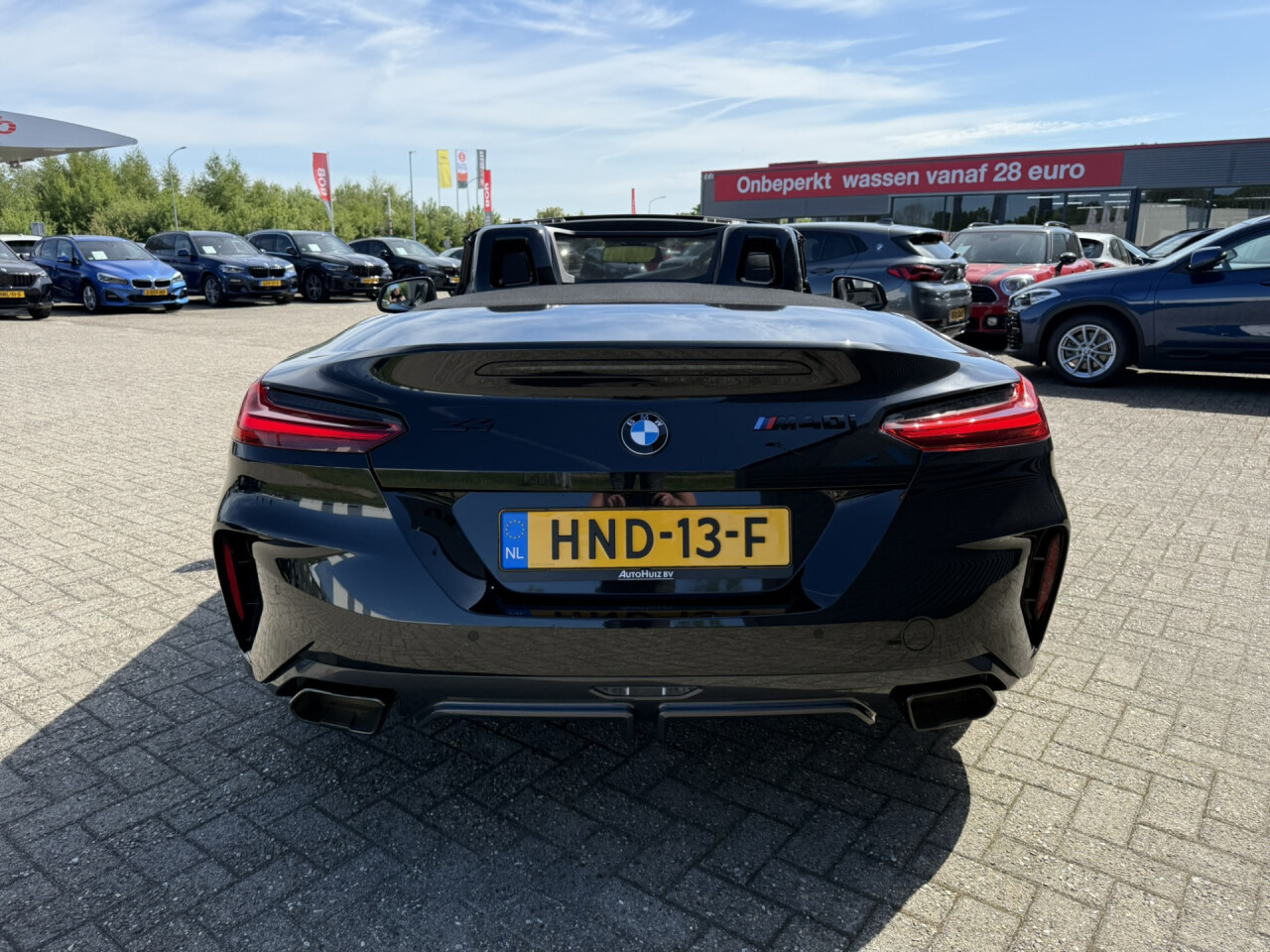 Nieuw bij AutoHuiz BV Winschoten in de voorraad, een schitterende en dealeronderhouden BMW Z4 Roadster M40i High Executive in de kleur Black Sapphire Schwarz Metallic.
