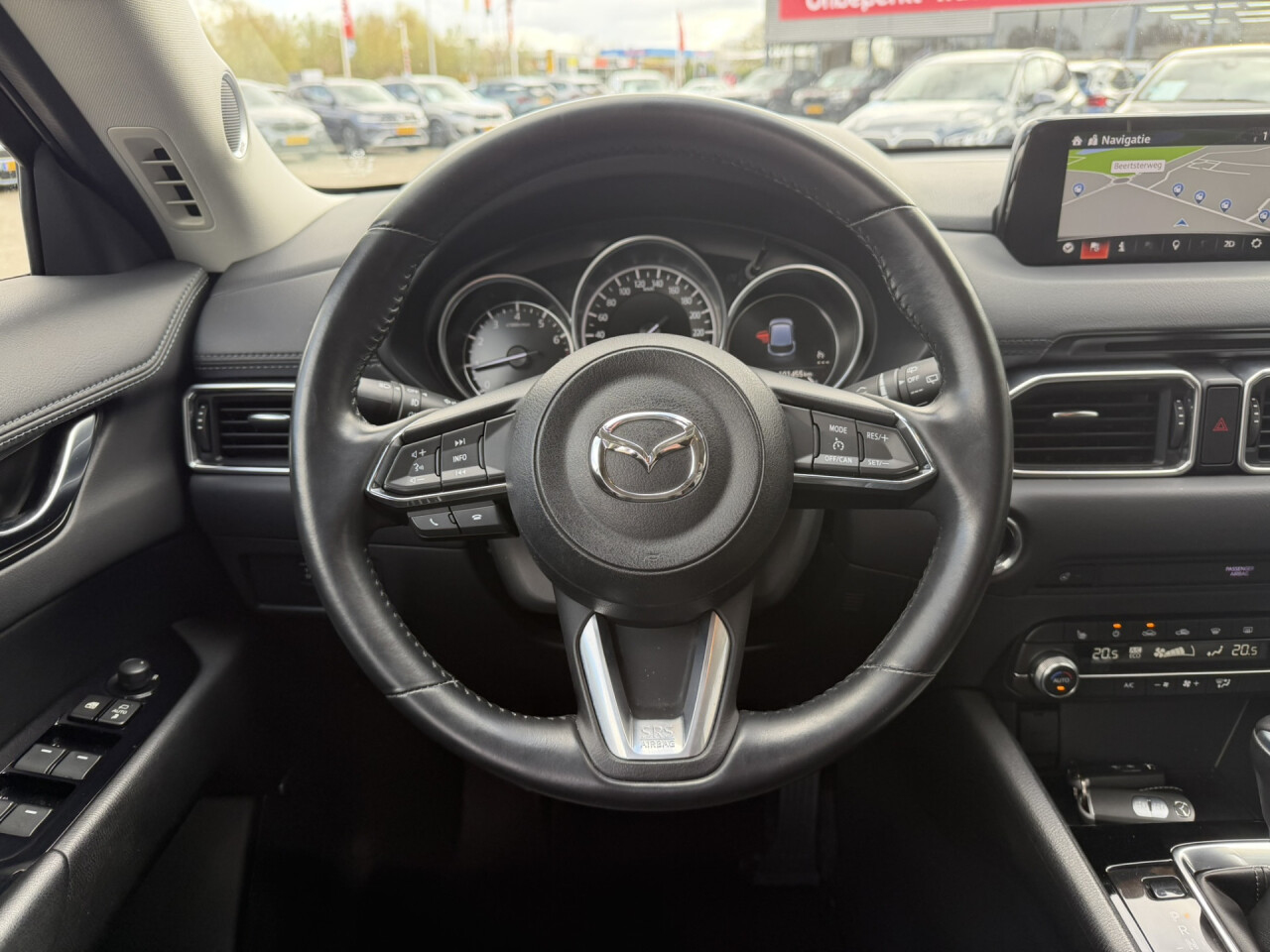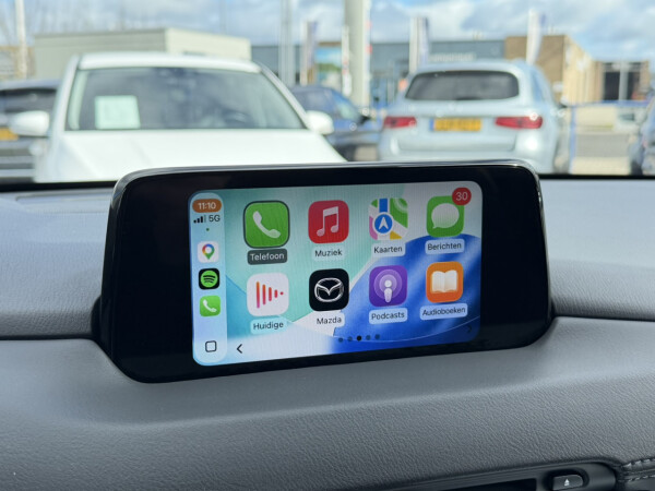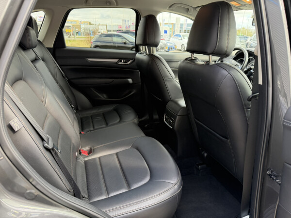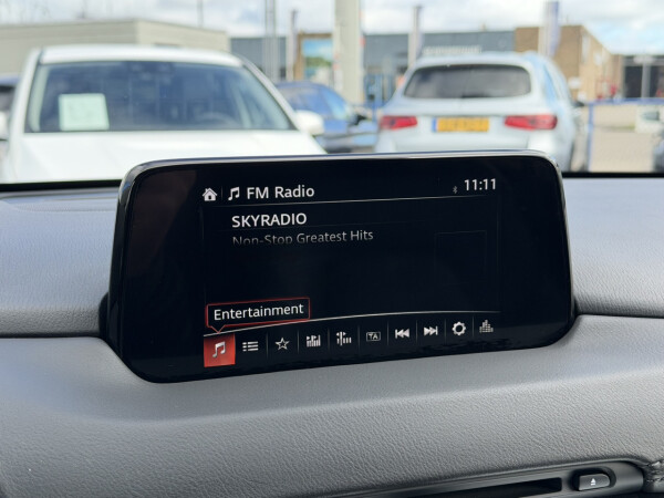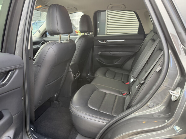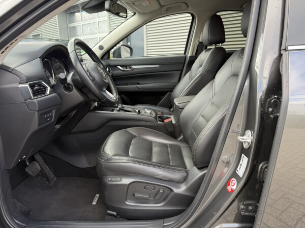 Nieuw binnen bij AutoHuiz Winschoten, een dealeronderhouden en rijk uitgeruste Mazda CX-5 2.0 SkyActiv-G 165 Business Comfort in de stoere kleur Machine Gray metallic met een zwart lederen interieur.