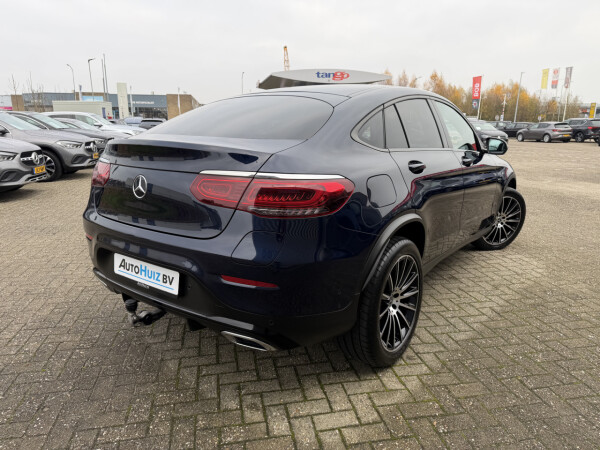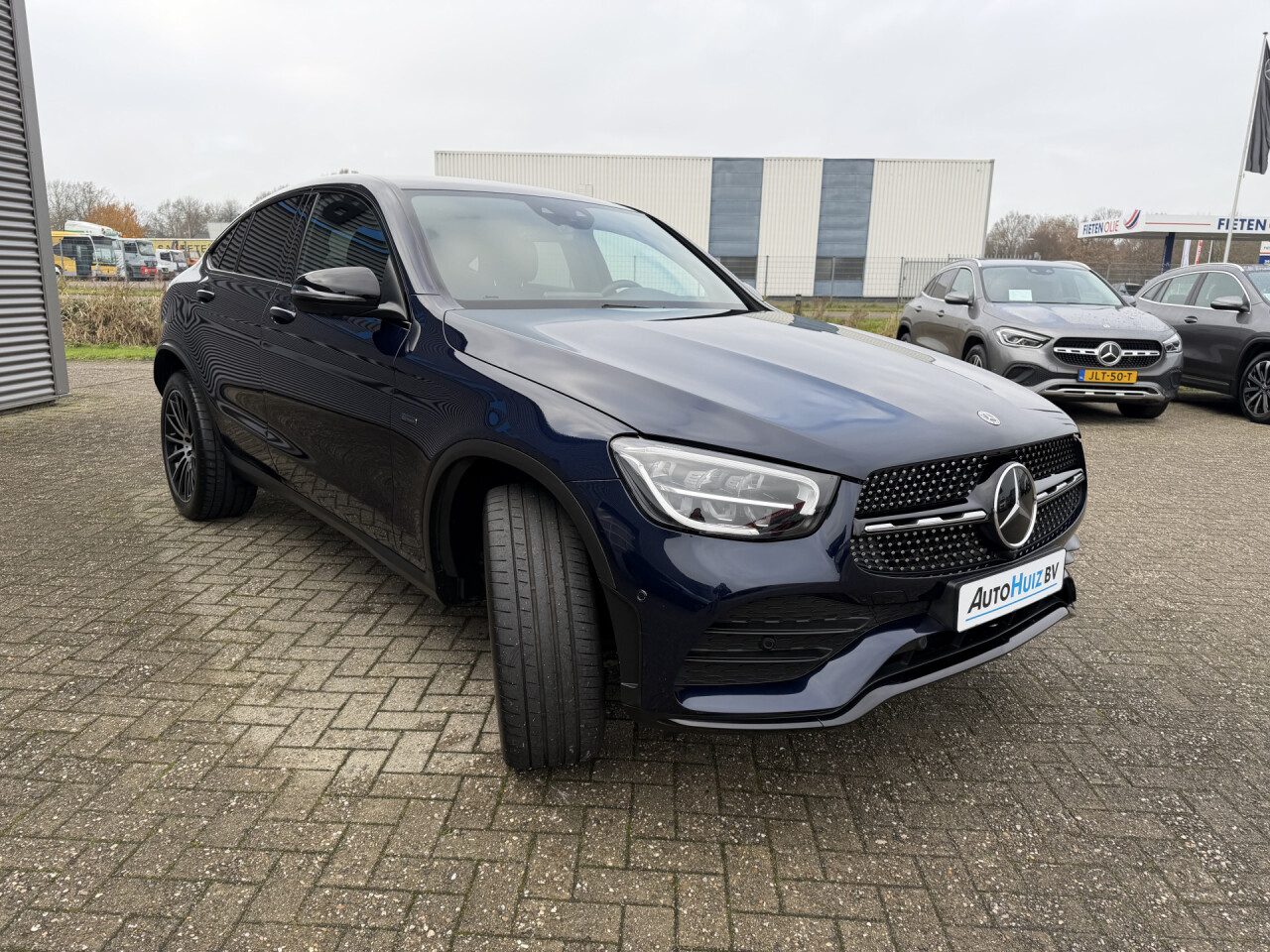 Nieuw binnen bij AutoHuiz BV Winschoten, een dealeronderhouden en zeer goed uitgeruste Mercedes-Benz GLC-klasse Coupé 300e 4MATIC AMG-Line in de kleur Cavansite Blue Metallic.