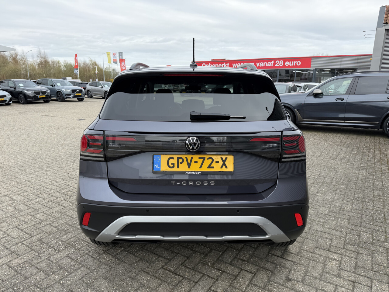 Nieuw binnen bij AutoHuiz BV Winschoten, een zo goed als nieuwe en rijk uitgeruste Volkswagen T-Cross 1.0 TSI Life Edition in de kleur Smoky Gray Metallic.
